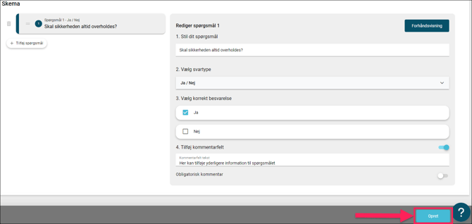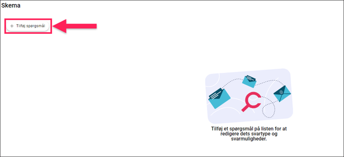 Når du er i bunden af "Oprettelses vinduet" får du muligheden for at trykke på knappen "Tilføj spørgsmål".