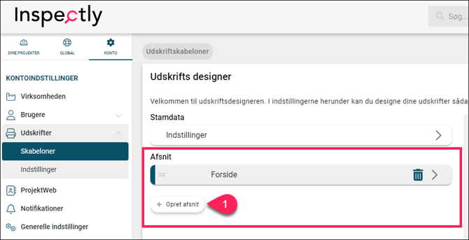 1. For at oprette et registreringsafsnit til din udskriftsskabelon er første skridt at oprette et afsnit.