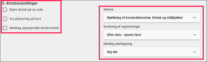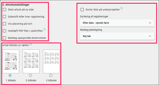 OBS! Vælges "Matrix-format" vil du have færre "Afsnitsindstillinger tilgængelige" herunder muligheden for at tilføje registreringsbilleder til dine udskrifter.