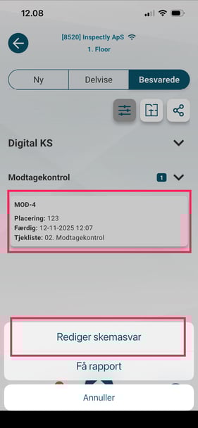 - Rediger besvarelsen og tryk på fluebenet for at gemme