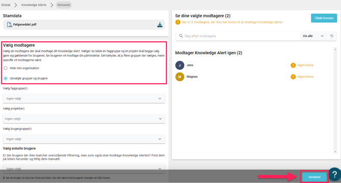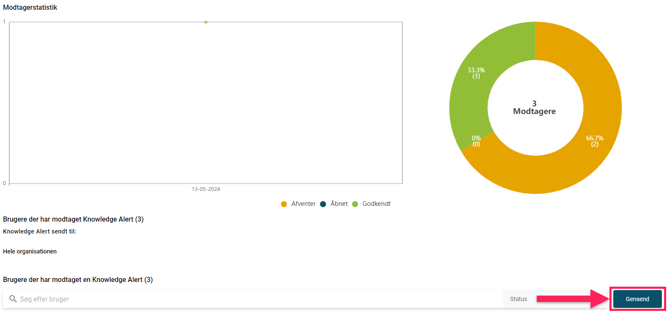 Når du har trykket på "Gensend" vil dine valgte "Brugerer" modtage en ny "Knowledge Alert".