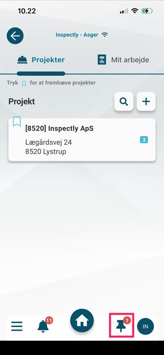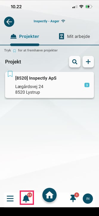 Dette er genvejen til Notifikationscenteret, hvor du får besked om nye projekter, opgaver og dokumenter samt evt. ændringer i opgavestatusser - afhængigt af dine rettigheder og din virksomheds opsætning.
