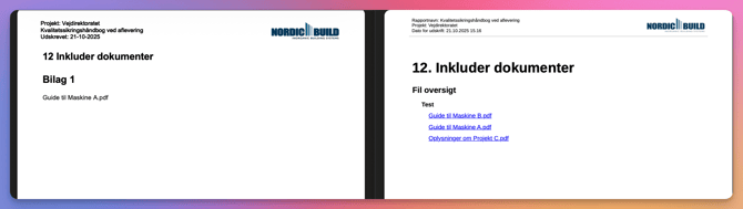 Afsnitstyperne "Oversigt" og "Inkludér" er sammenlagt til én afsnitstype. Dokumentoversigt vises fremover som en integreret del af dette afsnit. På samme vis som indholdsfortegnelsen er det nu muligt at klikke på bilaget man gerne vil gå til, hvorefter man kommer ned til det valgte bilag.