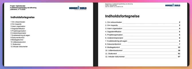 - Indholdsfortegnelse med sidetal og interaktive links til afsnit