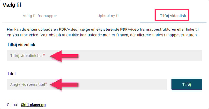 - Tilføje et video link.