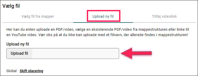 Her kan du uploade en global fil fra dine oprettede mapper.