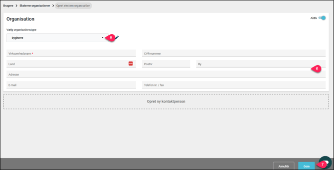 Opret kontaktperson til eksterne organisationer