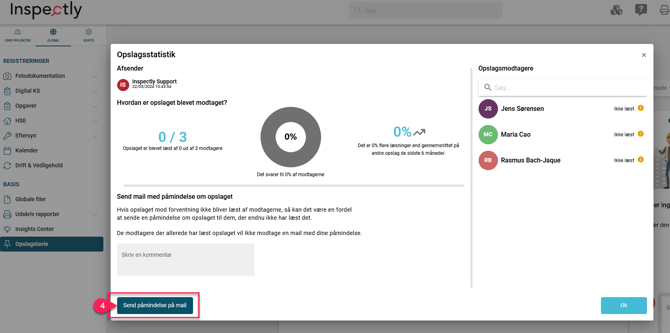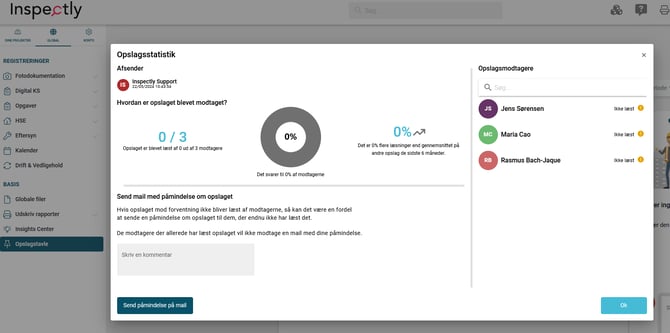 I denne artikel gennemgår vi hvordan du kan se statistik på et opslag og hvordan du sender en påmindelse på et opslag.