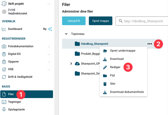 Gå til mappe ➜ Klik på tre prikker ➜ Klik ”Rediger”