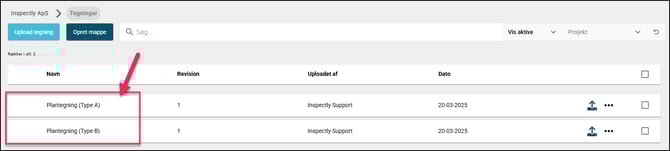 Når du uploader dine projektspecifikke tegninger i Inspectlys modul for "Tegninger", får du adgang til flere relevante muligheder, sammenlignet med hvis de uploades i "Filer" modulet.