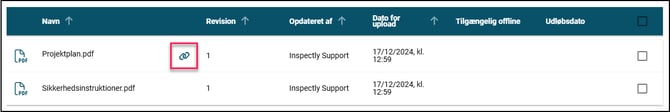 Hvis dokumentet bliver forældet og skal opdateres, skal du blot uploade en ny revision på den gamle fil i Inspectly, og så vil linket folk allerede har fået automatisk lede dem til det nye og opdaterede dokument.