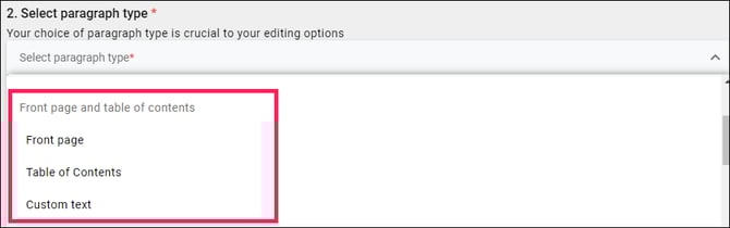 If you choose the paragraph type "Front Page" for a paragraph in your report template, it will now be created in your "Paragraph Overview."