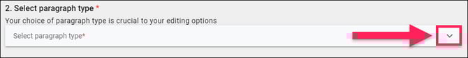 To view your options for paragraph types, you need to click on the dropdown menu "Select Paragraph Type."