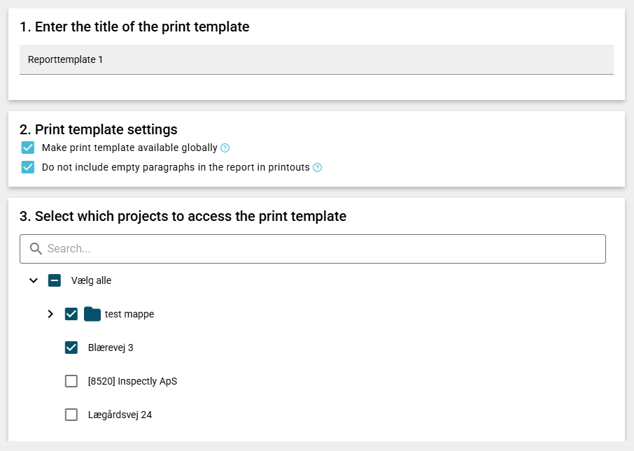 Based on your active projects on your Inspectly account, you can choose which projects your report template should be associated with.