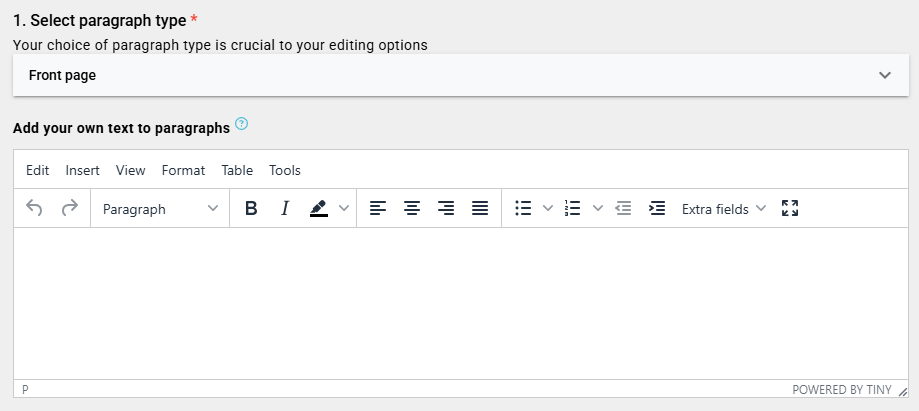 Note: Each paragraph type offers unique editing options and settings that suit the selected paragraph type. This means that specific editing options and settings will vary based on the paragraph type.